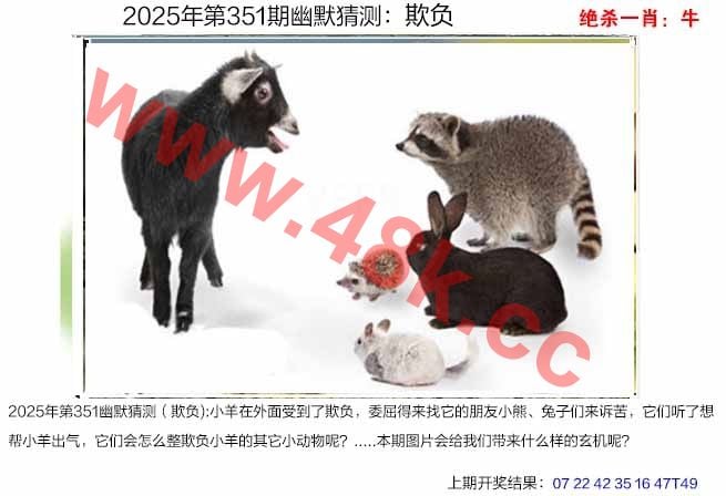 (1)2025年第351期幽默猜测(欺负):小羊在外面受到了欺负,委屈得来找它的朋友小熊、兔子们来诉苦,它们听了想帮小羊出气,它们会怎么整欺负小羊的其它小动物呢?....本期图片会给我们带来什么样的玄机呢?